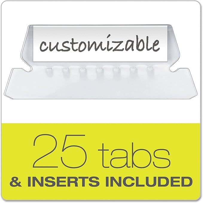 - Includes printable label sheet and 25 clear 1/5-cut tabs
