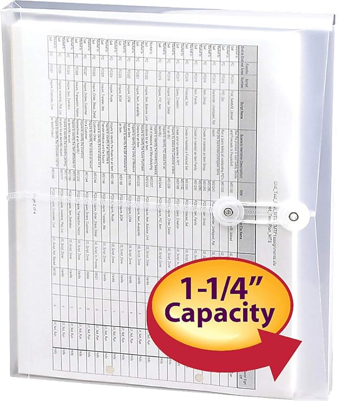 - Expands to 1-1/4" to hold up to 200 sheets; String-tie closure to secure contents