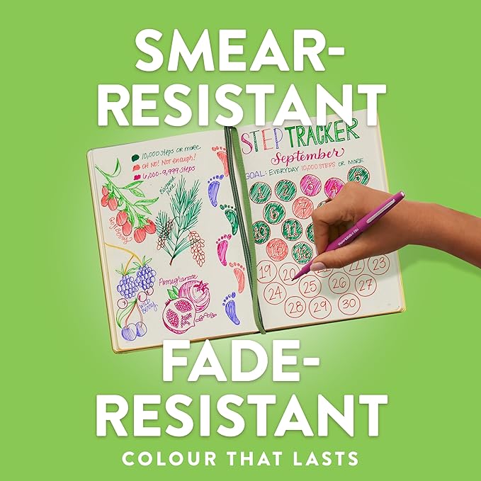 - Quick-drying, water-based ink resists smearing