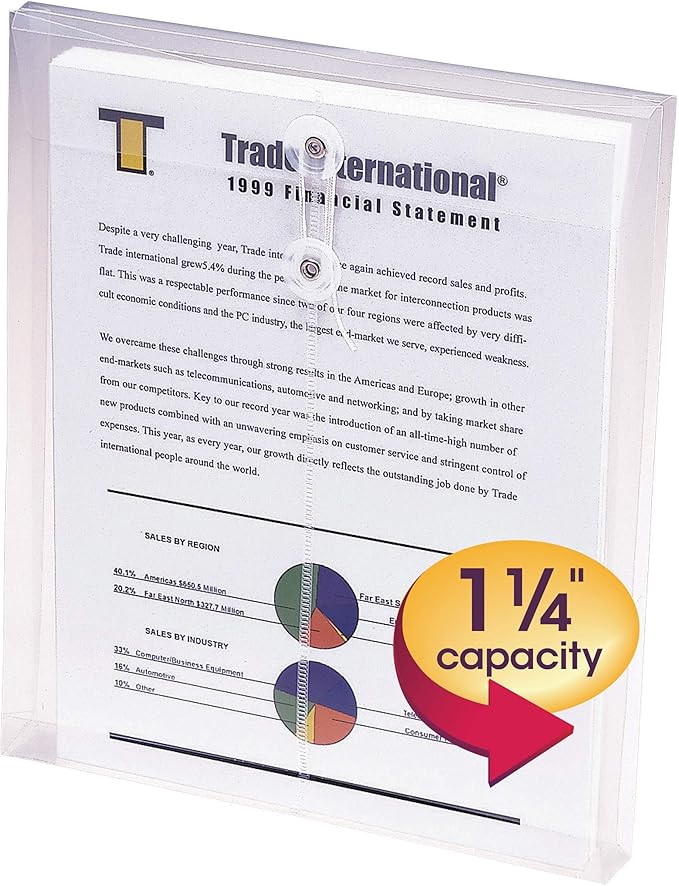 - Expands to 1-1/4" to hold up to 200 sheets; String-tie closure to secure contents