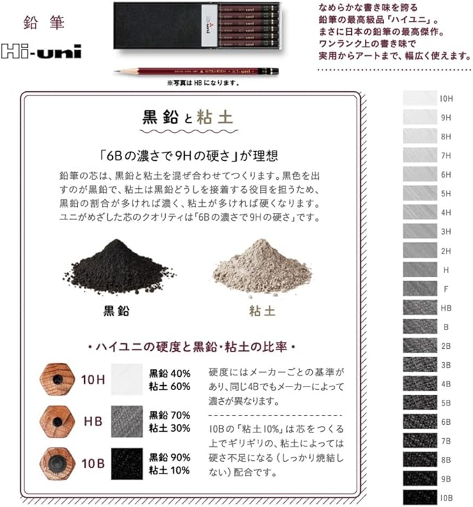 Uni Hi Wooden Pencil Art Set - 10B to 10H - Box of 22 (HUAS)
