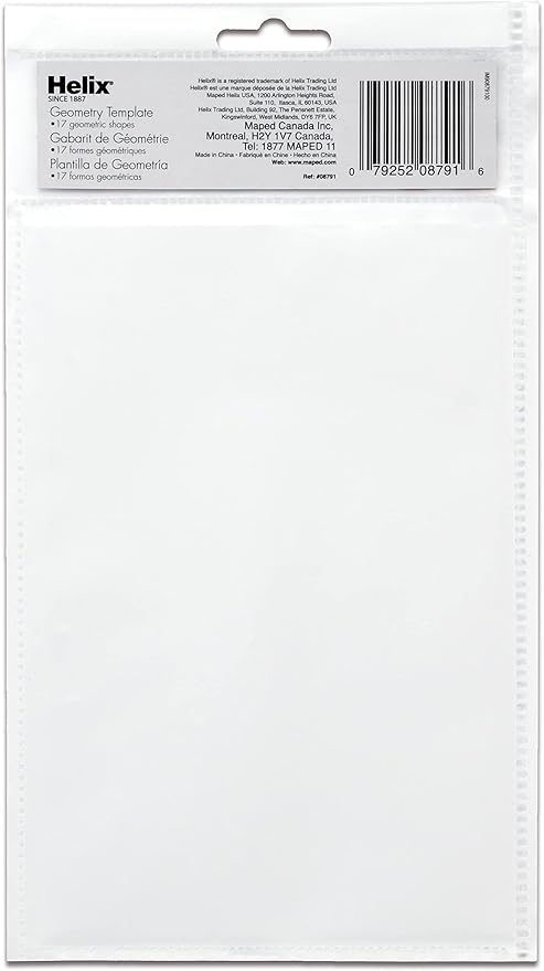 Maped Helix USA - Geometry Shapes Drawing Template - 17 Shapes - Educational Tool - Enhances Precision - Ideal for Drafting & Design - 20cm Ruler
