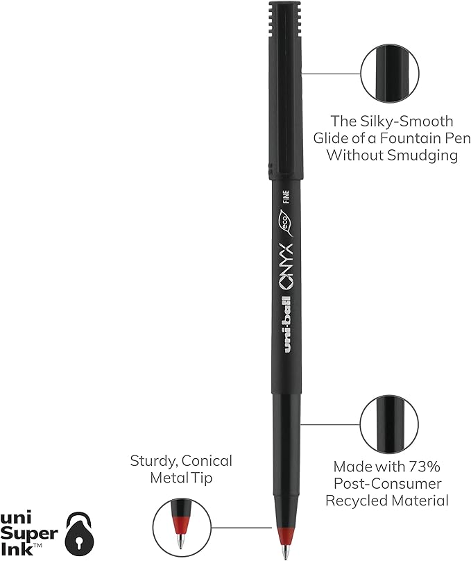 Uni-Ball Onyx Rollerball Stick Pen 12 Pack, 0.7mm Fine Red Pens, Gel Ink Pens | Office Supplies, Pens, Ballpoint Pen, Colored Pens, Gel Pens, Fine Point, Smooth Writing Pens