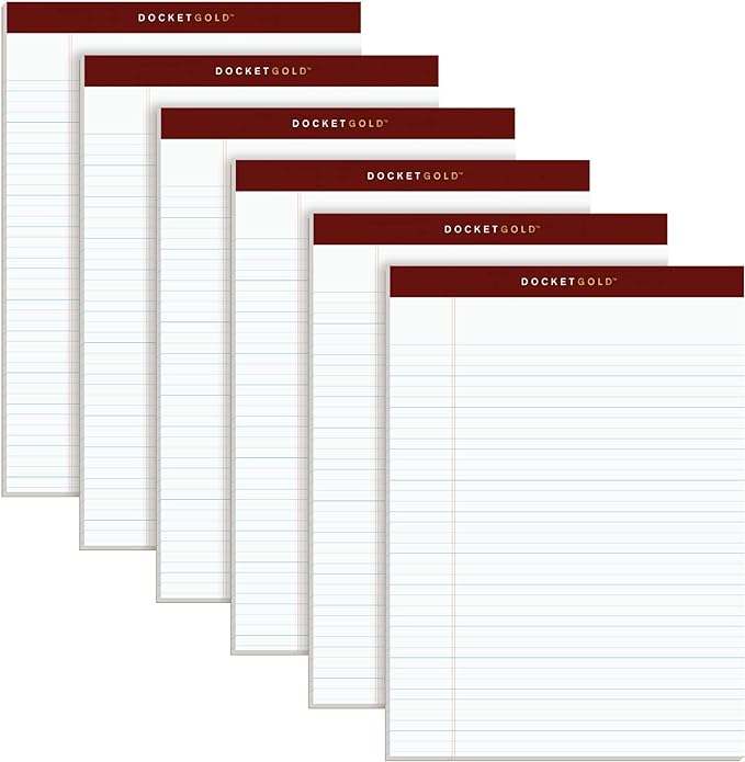 Tops Docket Gold Writing Tablet, 8-1/2 x 11-3/4 Inches, Perforated, White, Narrow Rule, 50 Sheets per Pad, 6 Pads per Pack (63942)