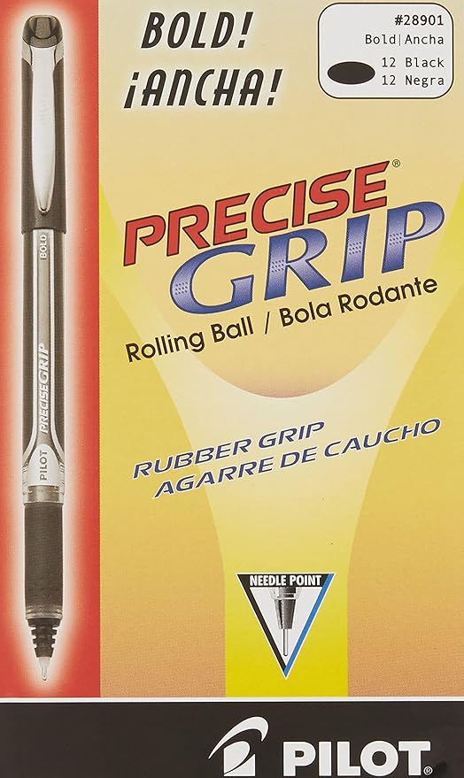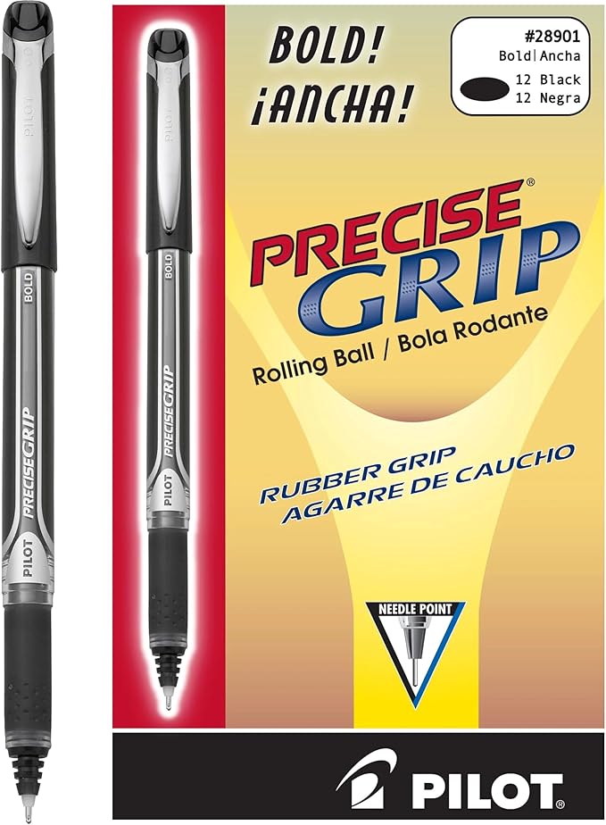PILOT, Precise Grip Liquid Ink Rolling Ball Stick Pens, Bold Point 1 mm, Black, Pack of 12
