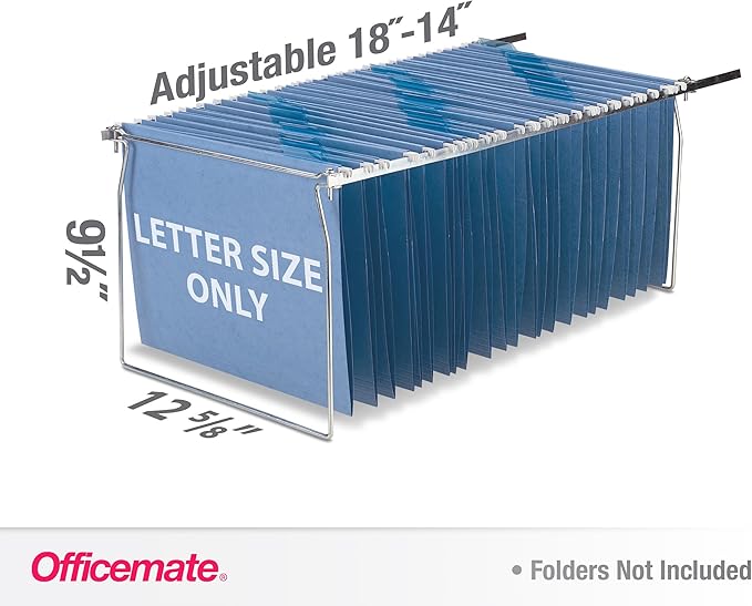 Officemate Hanging File Frame, Letter Size, Adjustable 14 to 18-Inches, 2 Count (Pack of 1),Silver, 91990