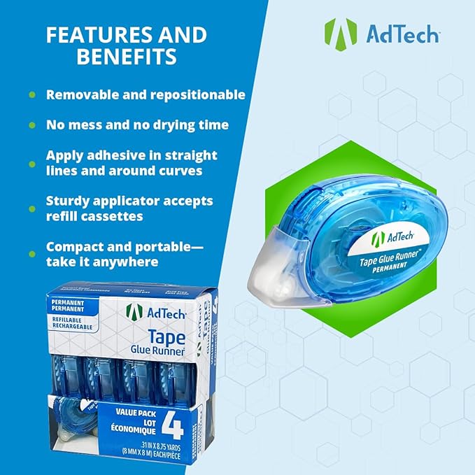 AdTech 5603 Permanent Crafter's Tape, 0.31" x 315", Pack of 4