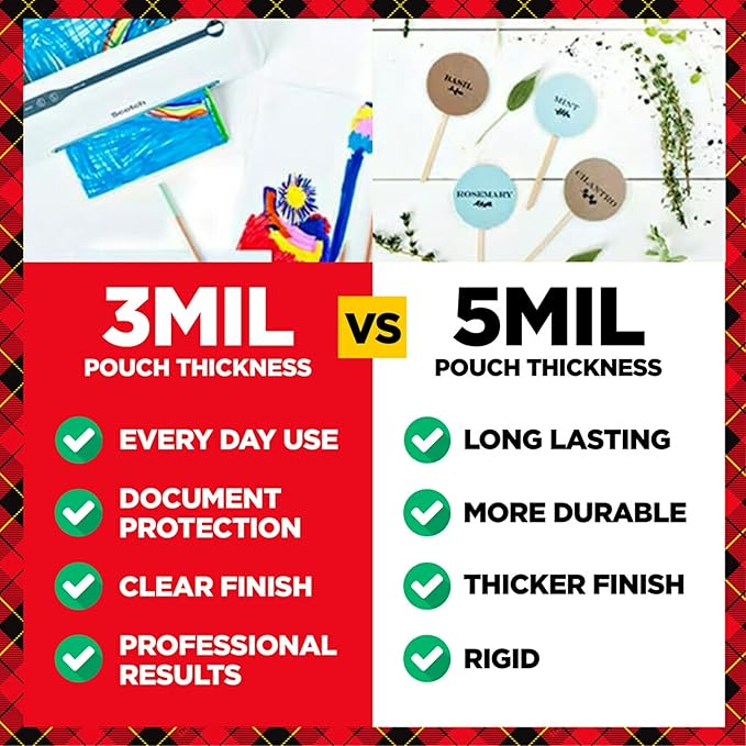 - Use with 3-5 mil thick thermal pouches, up to 9" wide