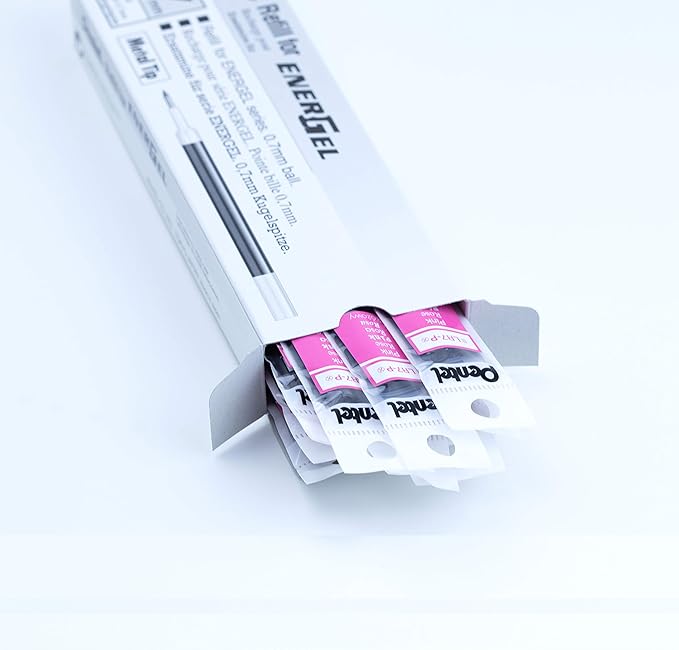 Pentel Refill Ink For EnerGel and Lancelot Gel Pen, (0.7mm) Metal Tip, Pink Ink, Pack of 12 (LR7-P)