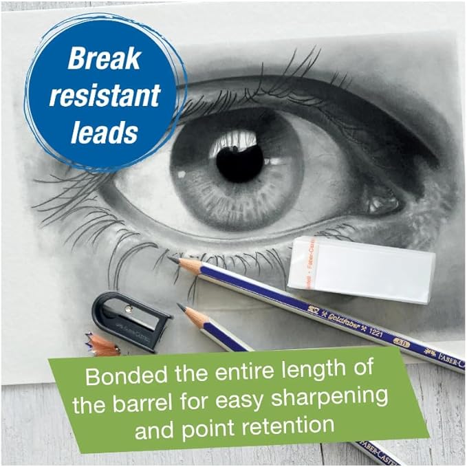 - BREAK-RESISTANT LEAD – Faber-Castell graphite pencils feature a break-resistant lead that is glued the entire length of the pencil to ensure limitless drawing and easy sharpening.