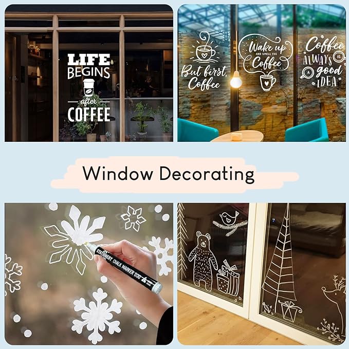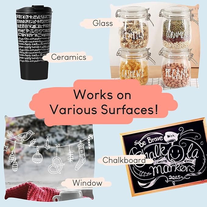 - MESS FREE and EASY ERASE: Our easily erasable chalk pens wipe off in seconds from any non-porous surface. Always test your pens in a small area of your surface first to verify that the surface’s suitability and that it can be easily removed.