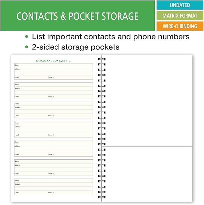 - Laminated cover, wire-o bound with wrap design, locks covers on with 3-hole drill for insertion into 3-ring binders; 2-sided pocket for storage of important papers
