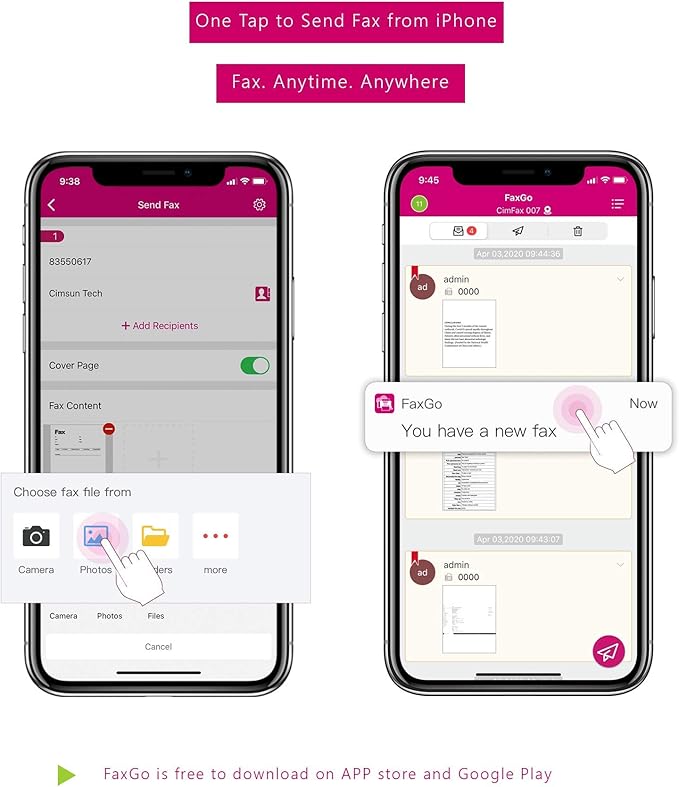 - One Tap to send fax on your smart phone. Remote access. Fax anytime anywhere.