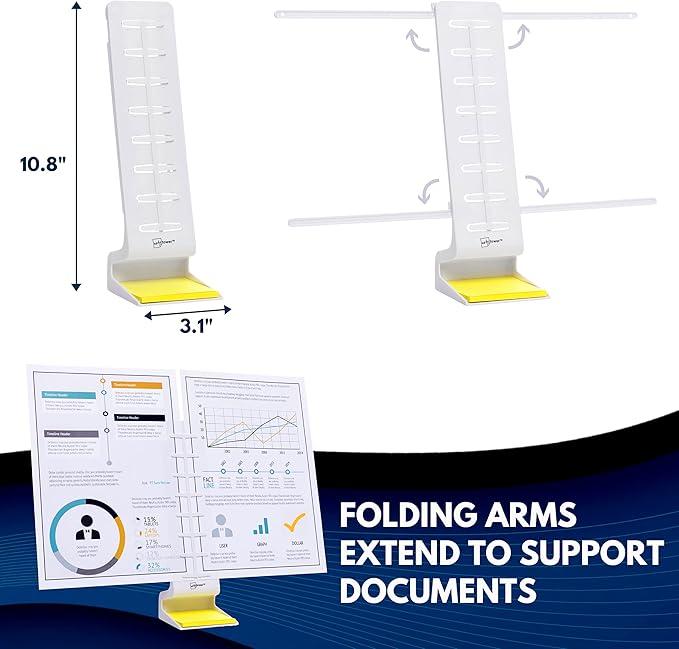 - Compact & Light Weight: The typing stand document holder features a compact tower design with flexible clips and lightweight folding arms, making it not only space-efficient but also easy to manage and adjust. Our sleek build does not clutter the desk and is ideal for any workspace, whether at home or in a professional setting
