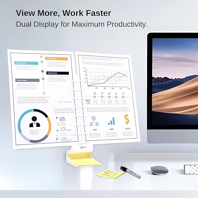 - Dual Page In-Line Display for Fast Typing: This paper holder for desk is designed to enhance productivity by allowing you to display two pages side by side. The dual paper referencing system facilitates faster typing and efficient tracking of documents, making it ideal for those who regularly work with multiple papers or data sources. It supports effective multitasking by keeping relevant information directly in your line of sight, thus speeding up data entry and document comparison tasks.