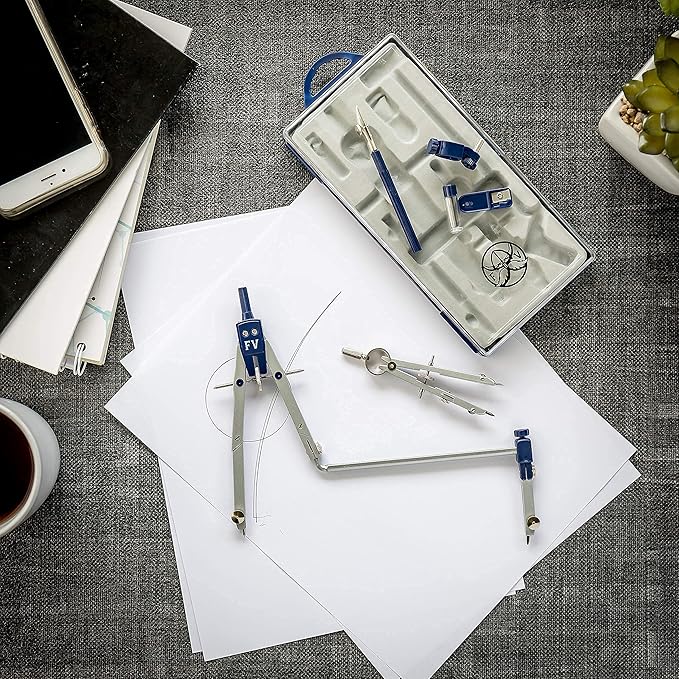 - GEOMETRY COMPASS SET CONTAINS – Two Ferocious Viking bow compasses, an extension beam, interchangeable attachments, a slip handle for pens, pencils, stylus or markers. Ideal for students in grades 9-12, vocational or college classes studying drafting, architectural design, and construction engineering