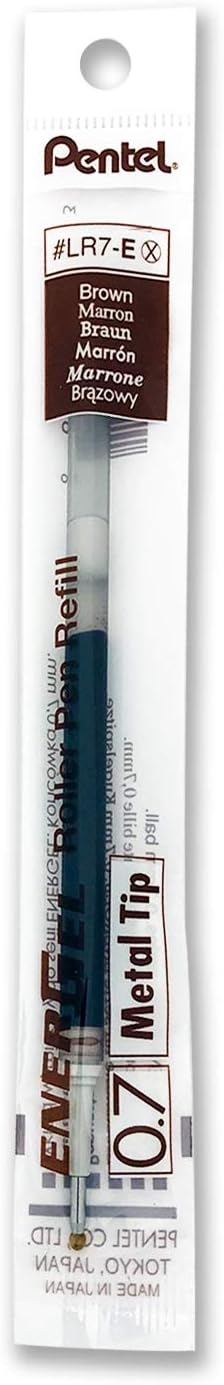 Pentel Refill Ink for EnerGel RTX Retractable Gel Pen 12 Pack, 0.7mm, Medium Point, Brown (LR7-E)