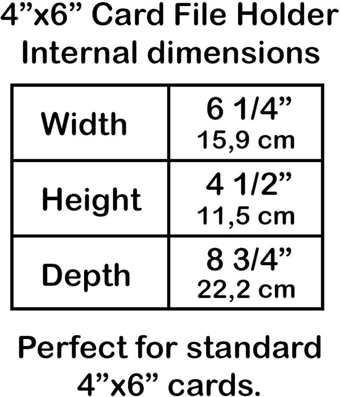 - Versatile and Compact: This card file holder is designed to accommodate 4 x 6 inches cards, making it suitable for various applications such as recipes, contact information, study notes, documents, bills and much more; Its compact design ensures that it won't take up much space on your desk, countertops, or shelves, making it perfect for both home and office use