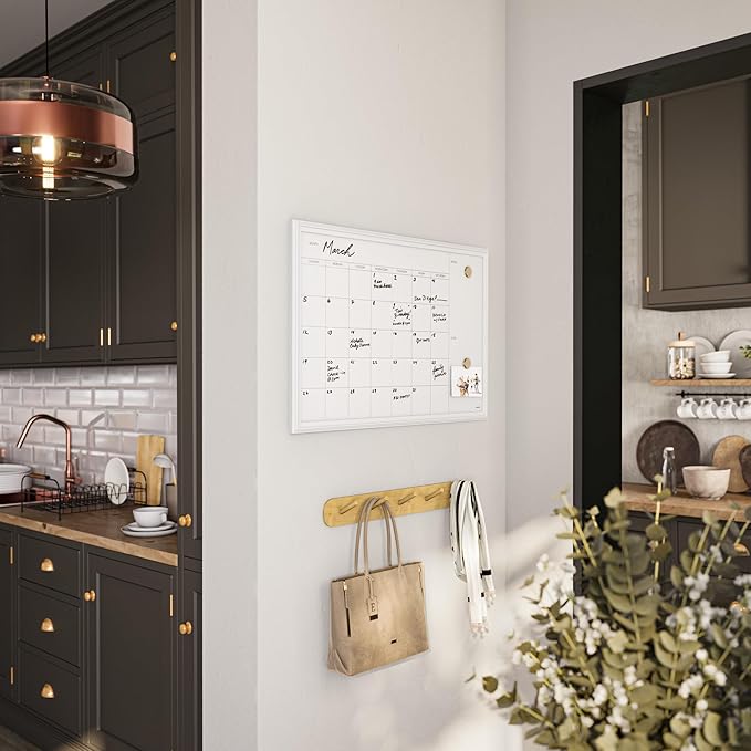- CALENDAR VIEW: Plan your month at a glance with this convenient monthly calendar with white wood style frame; from schedules to dates, to meal planning, keep track of your entire family's tasks and events effortlessly; includes two magnets