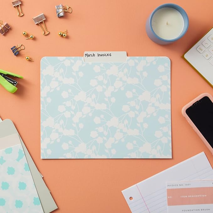 - 12 Aesthetic Patterns: Our mint-printed pastel folders feature floral patterns in soft pastel colors, including teal, blue, grey, pink, and ivory, that will effortlessly elevate your office decor
