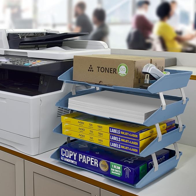- Textured Surface and Beveled Front: The textured surface on the tray and the slightly beveled front of the letter tray prevent documents from slipping out, maintaining organization and preventing potential messes;