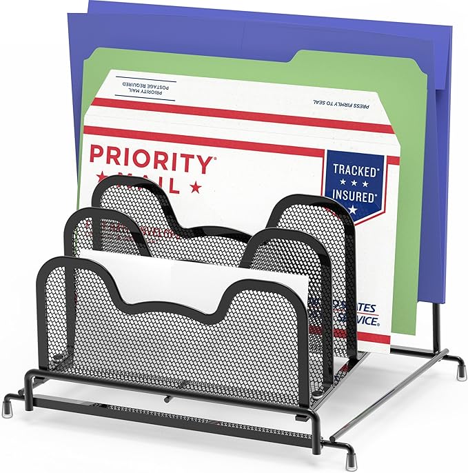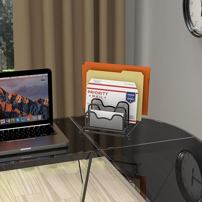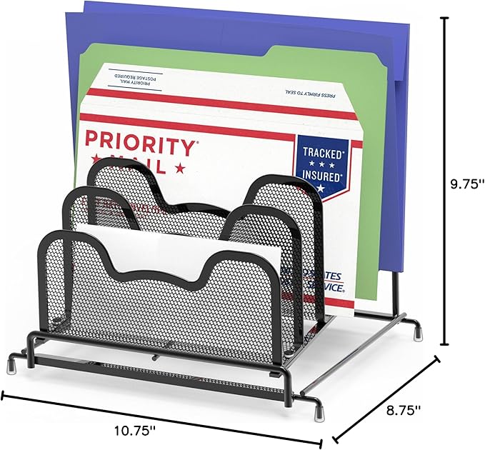 - Space-saving mesh design with stacking file sorter. No Tools Needed.