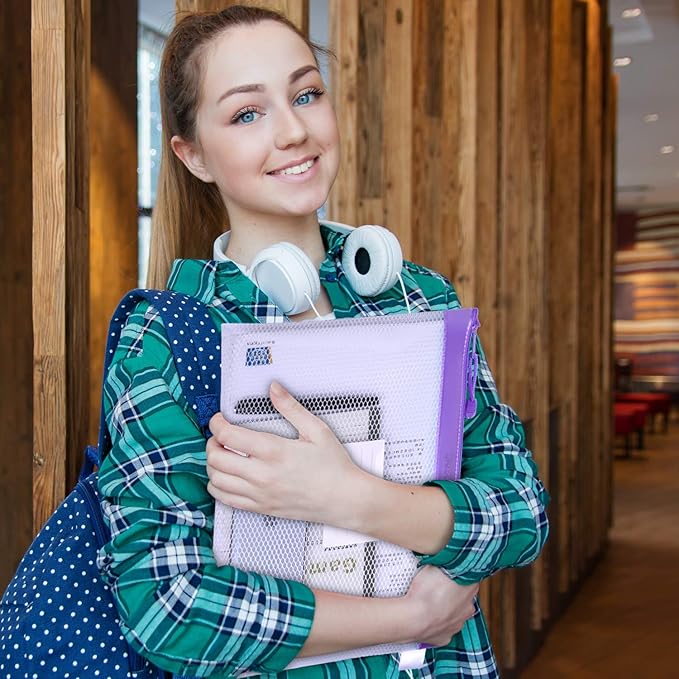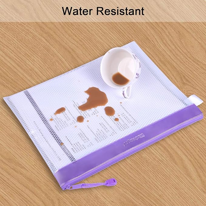 Zipper Pouch, Wisdompro 4 Packs Durable Letter Size Waterproof Mesh File Bag, Document Organizer - Purple