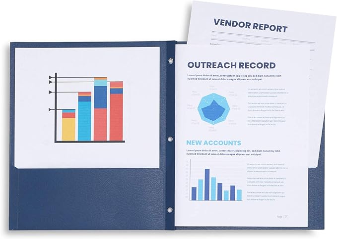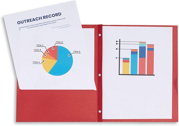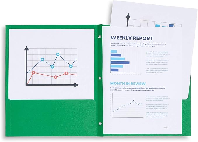 - Durable folders that are designed to hold up to 100 sheets of standard size paper