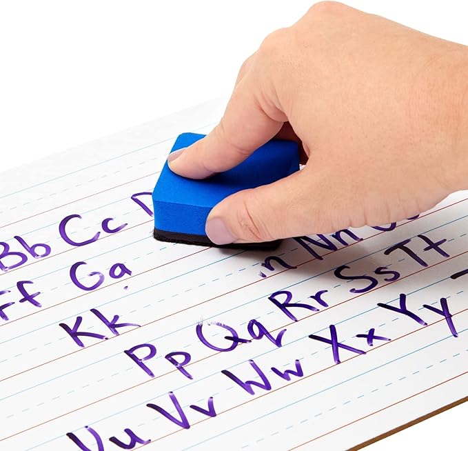 - One Blank Side: Our 9x12 dry erase board for kids features one blank side and one lined side that has an erasable surface to be wiped away easily and reused for in your home, classroom, or office