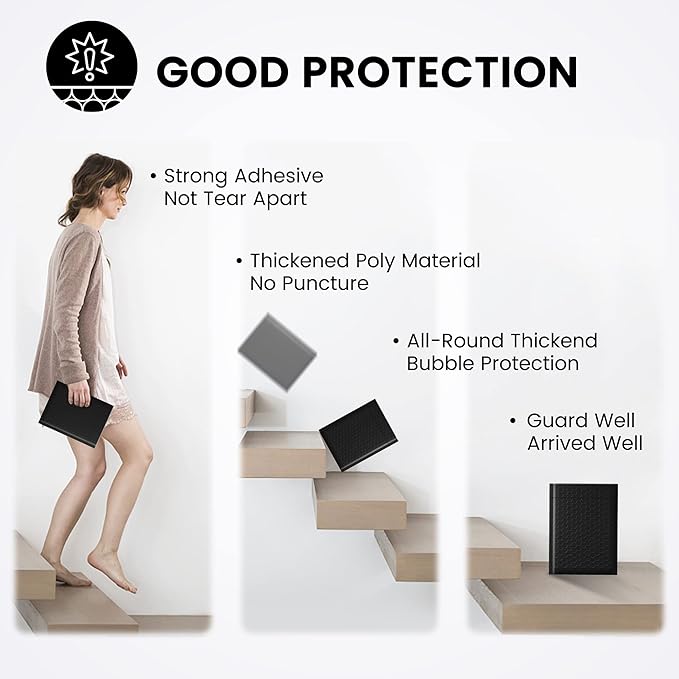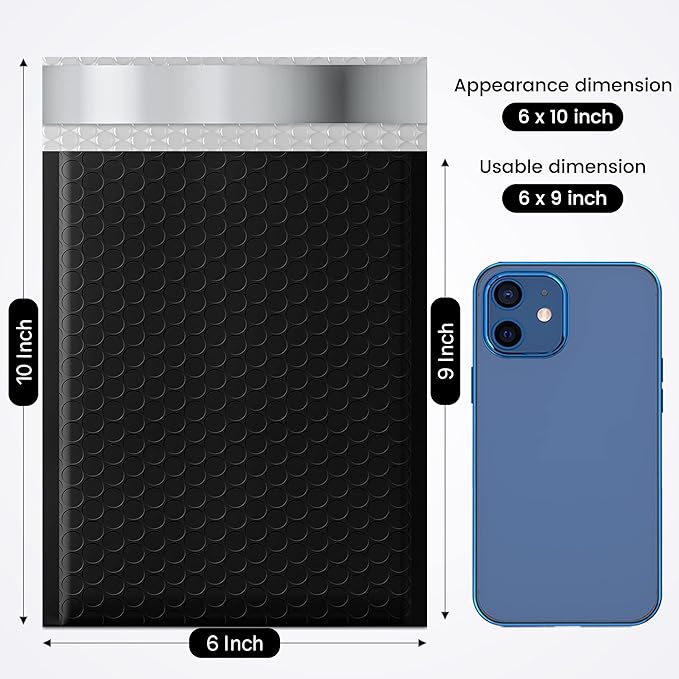 - 【Waterproof & Self Sealing】The bubble mailer 6x10 has real water resistance with strong self-adhesive, Our black bubble mailers is using four-season adhesive, which can maintain strong stickiness throughout the year.