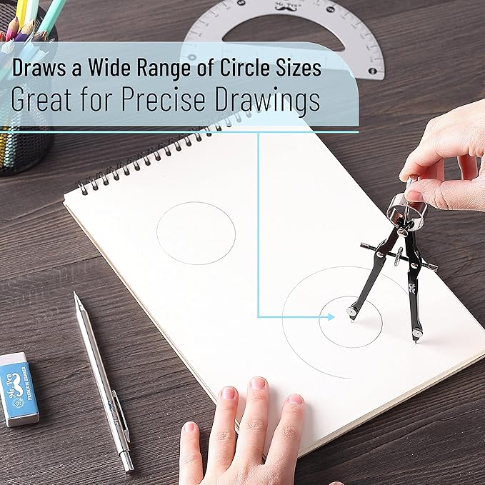 - Mr. Pen precision bow compass features a spring-loaded head and center wheel, preventing unwanted leg movements and enabling precise control.