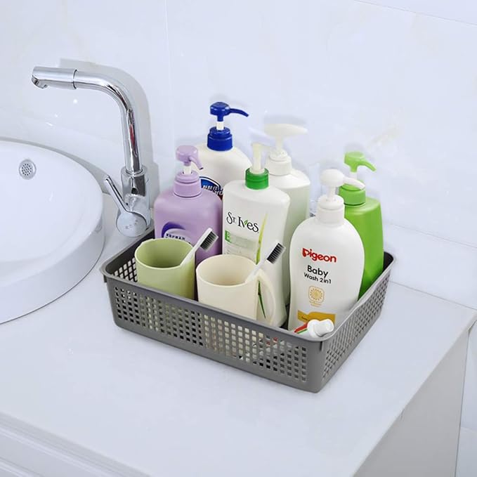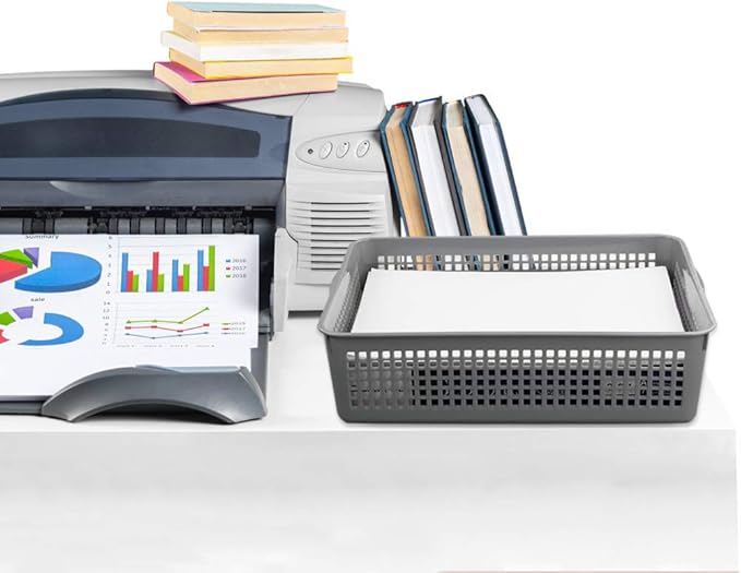A4 Size Plastic Basket, Desktop File Storage Organization Tray, Set of 6 (Grey)