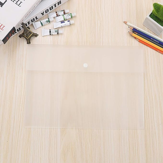 VANRA Poly File Folder Pockets File Jacket Plastic Envelope Flat Document Letter Organizer with Snap Button Closure A4 Letter Size (Pack of 5, Translucent)