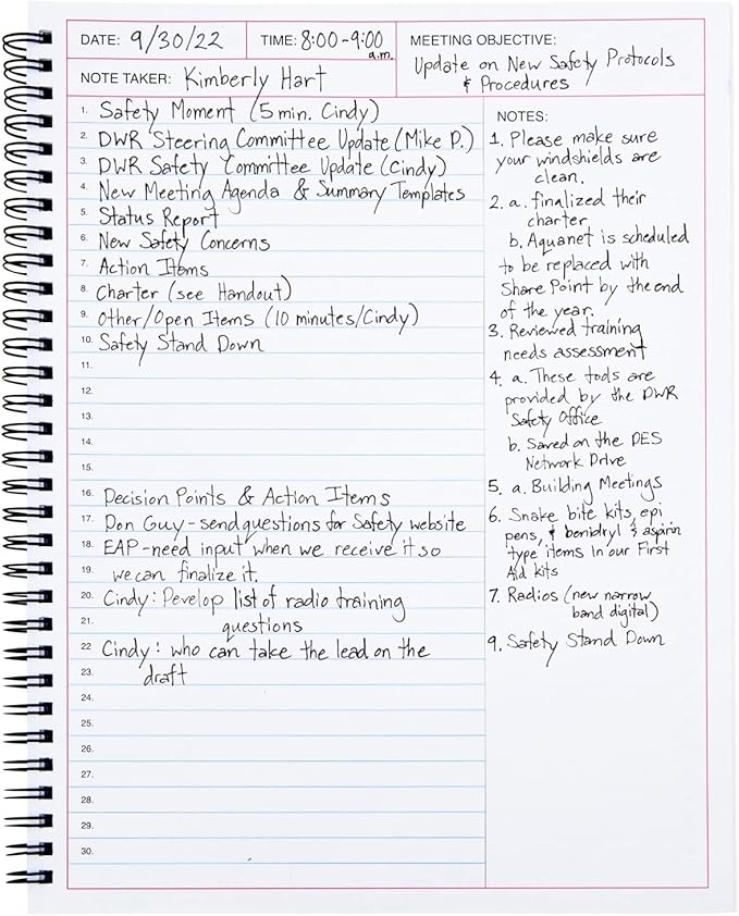 - Easy Organization: Each undated daily notebook for work has ruled pages, space for the date, time, office meeting agenda and objective, meeting minutes, and 30 meeting points for clear organization