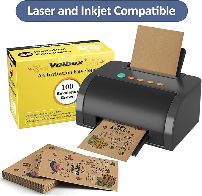 - 【Printer Friendly】Print with your Laser and Inkjet Printers on our A4 greeting card envelopes. Perfect size and weight, never worry about smudging or having the envelopes engulfed by your printer.