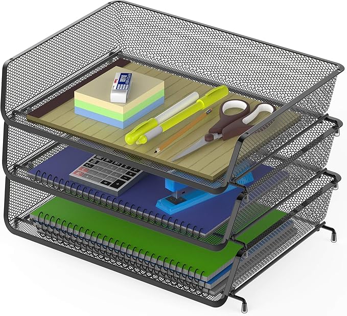 Simple Houseware 3-Pack Stackable Wide Entry Desk File Document Letter Tray, Black