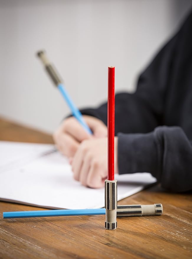 - ✔ PERFECT SIZE: 24 pencils with erasers, 12 blue, and 12 red. Perfect for good or evil sides. The light saber pencil is made of wood. Size of pencil: 7.5inches Size of eraser: 2.5inches, proper size for adults, boys, and girls, comfortable to grip. Other items pictured are not included.
