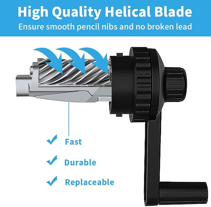 - Self-feed Pencil Sharpener: This artist pencil sharpener is super easy to operate, just insert the pencil into the holder and crank clockwise while holding the sharpener, the pencil starts to move inside the sharpener with each crank; when the resistance decreases crank it anticlockwise and the pencil starts to come out on its own! Do not sharpen any more when the pencil is done, or it will chew up your pencils!