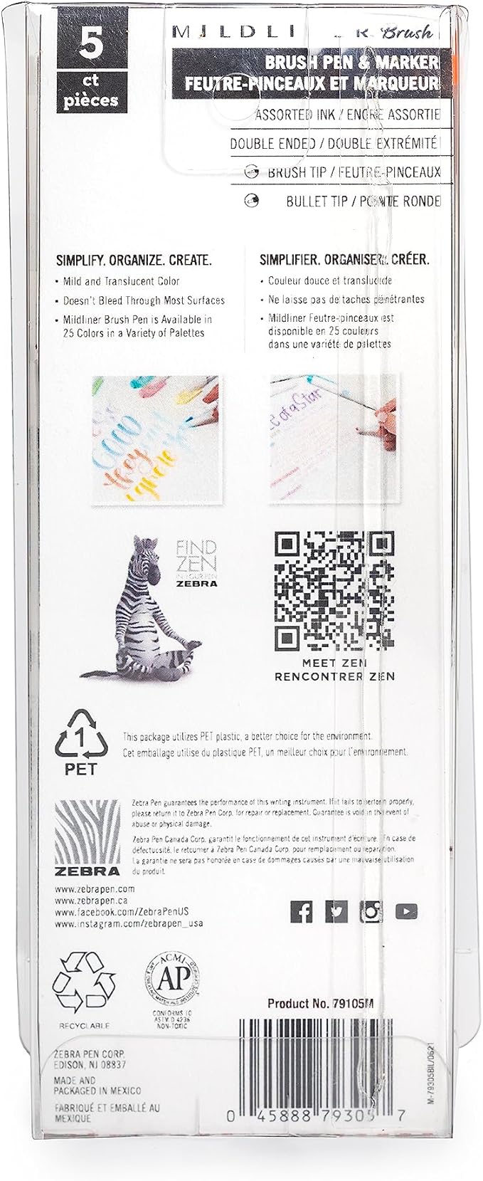 Zebra Pen Mildliner Brush Marker, Double Ended Brush and Fine Tip Pen, Assorted Fluorescent Colors, 5 Pack