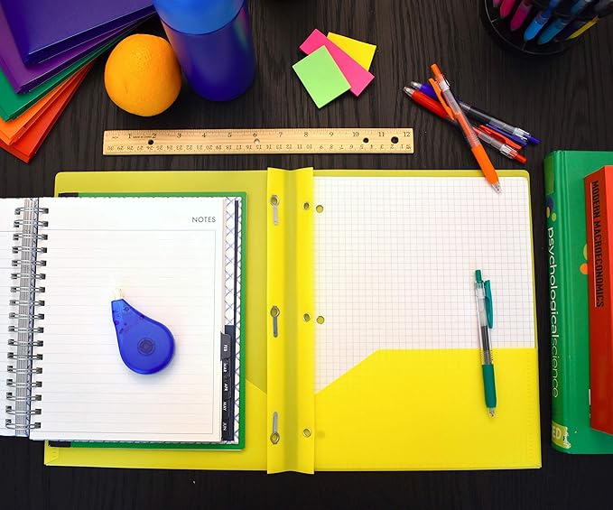 - Includes 3 letter size poly folders (9-3/4" W x 11-1/2" H) with two pockets and 3-hole punch prong fasteners, perfect for school paperwork, forms, and homework