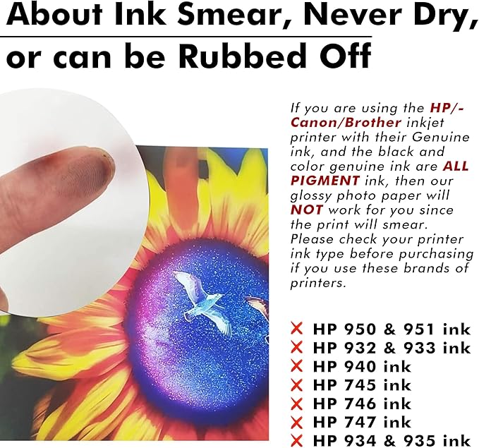 - Compatible with inkjet printers. Recommend use dye ink, No Smudging, No Smearing