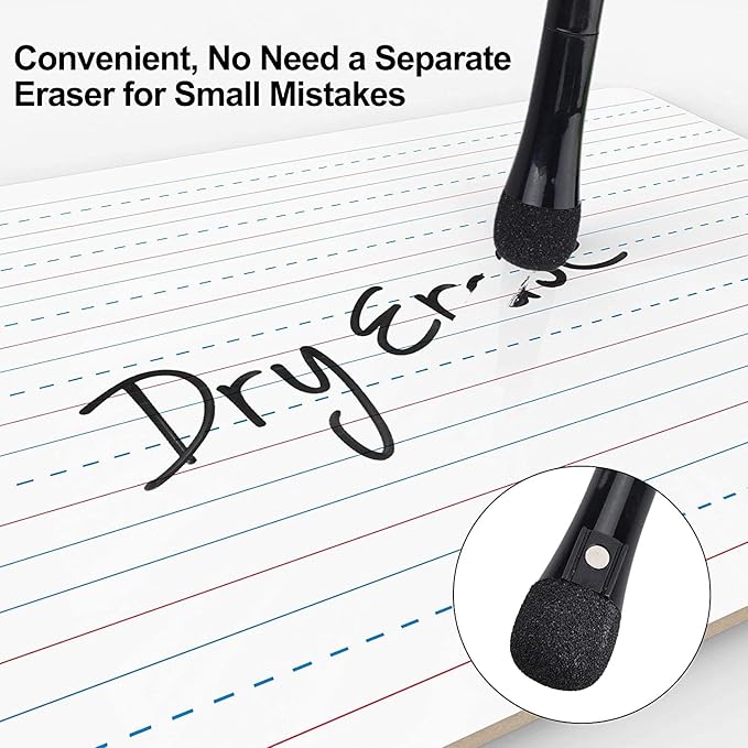 - [ Easy to Remove and Clean Up, Won't Stain Hands or Dark Clothes] - Dry and residue-free wiping of whiteboards by the erase. And for dark clothes, it is totally neat. But for the light one, there may be a little smear