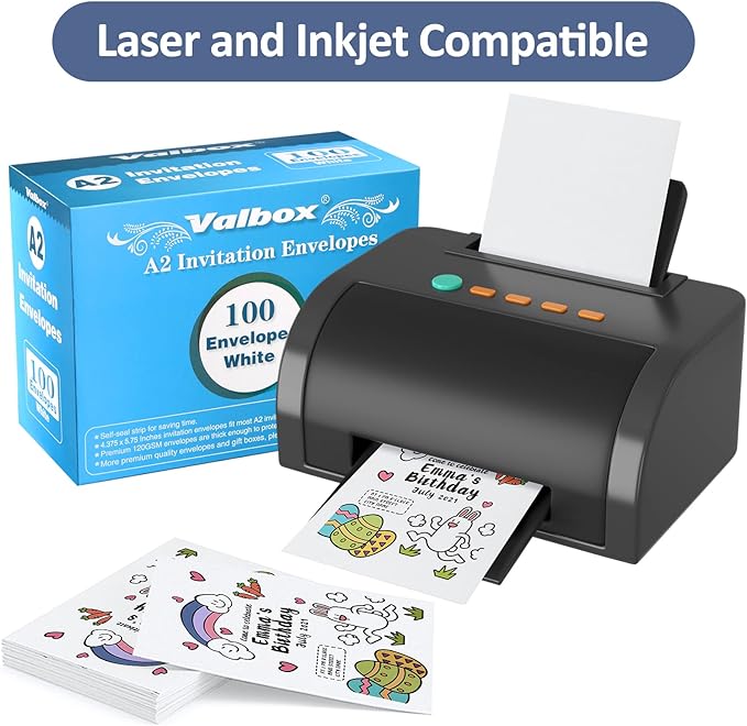 - 【Printer Friendly】Print with your Laser and Inkjet Printers on our A2 greeting card envelopes. Perfect size and weight, never worry about smudging or having the envelopes engulfed by your printer.
