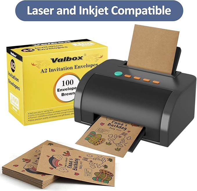 - 【Printer Friendly】Print with your Laser and Inkjet Printers on our A2 greeting card envelopes. Perfect size and weight, never worry about smudging or having the envelopes engulfed by your printer.