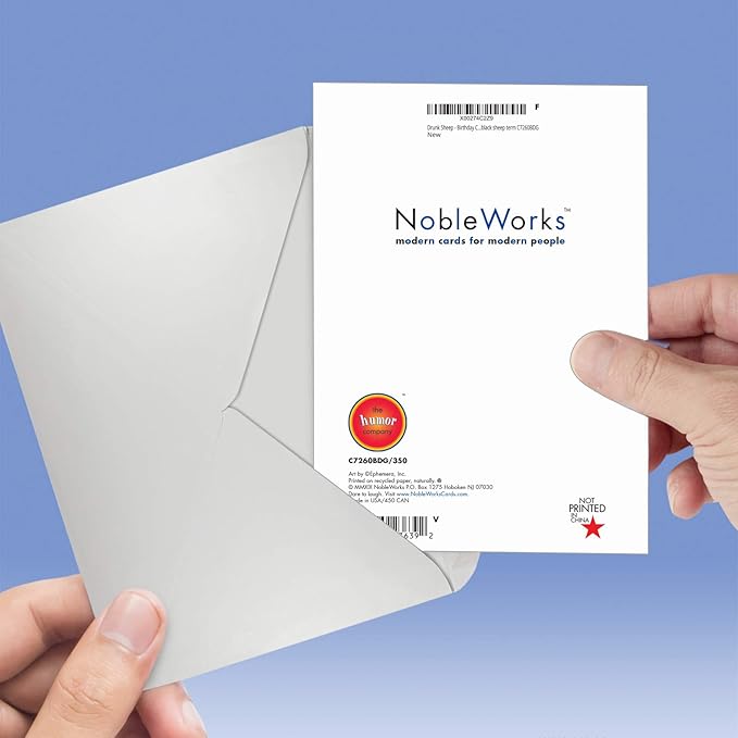 NobleWorks - 1 Funny Retro Birthday Card with Envelope - Hilarious Vintage Humor, Grown-Up Birthday Greeting - Drunk Sheep C7260BDG