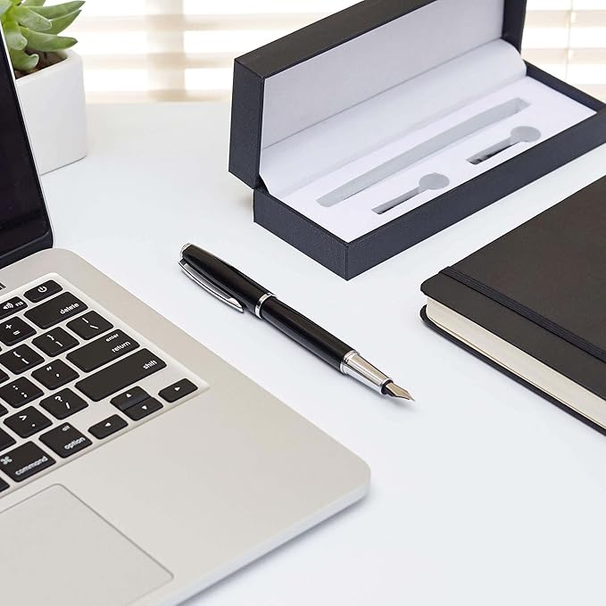 Amazon Basics Fountain Pen with two replacement cartridges- Medium Point, Black Ink