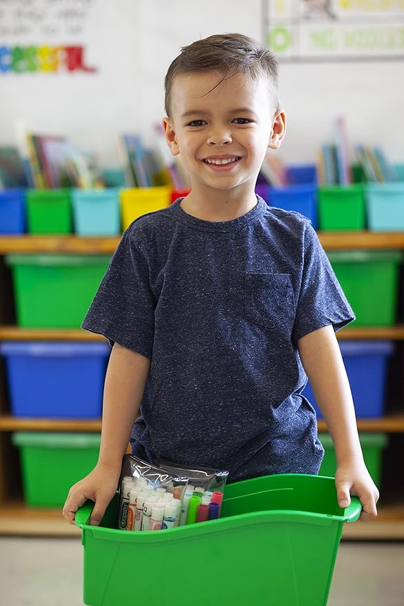 Storex Large Book Bin, Linking Storage Bin, Dry Erase Surface, 14.3 x 7 x 5.3 Inches, STEM Assortment, (70105A06C) (Pack of 30)