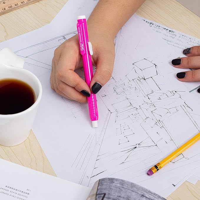 Mr. Pen- Retractable Mechanical Pencil Eraser, Pack of 6, Vibrant Colors, Artist & Pen Eraser