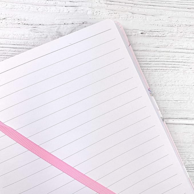RICCO BELLO Wide Ruled Hardcover Diary Journal School Notebook for Kids, Tweens - Bookmark, Band Closure, Storage Pocket, 5.7 x 8.4 Inches, 192 Pages, (Pink Unicorn)