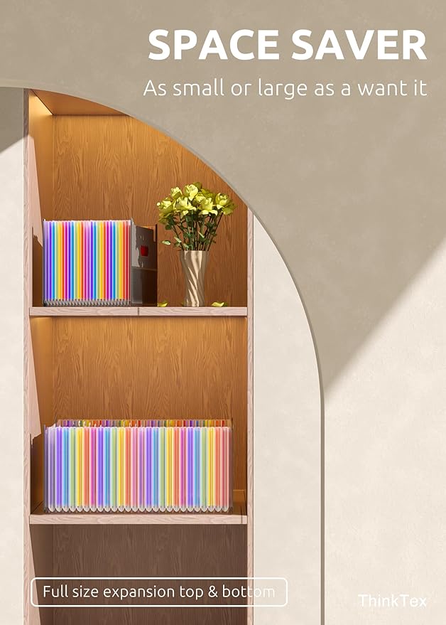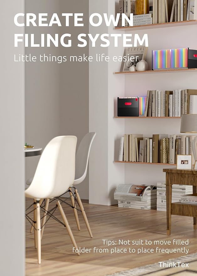 - UPRIGHT & EXPANDABLE - ThinkTex Accordion File Organizer, 26 pockets, A-Z multi-colored tabs, Open top, for letter/A4 size